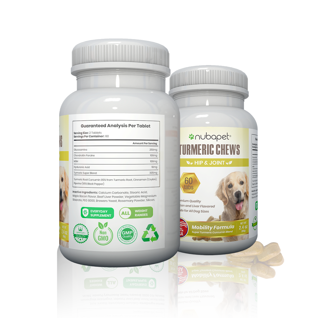All of the ingredients in Turmeric Chews combine to support healthy joint and cartilage function, which can help put the bounce back in your best friend’s step.