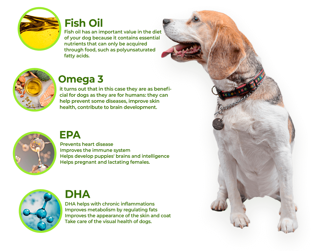 it turns out that in this case they are as beneficial for dogs as they are for humans: they can help prevent some diseases, improve skin health, contribute to brain development.